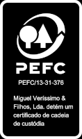 A Miguel Veríssimo & Filhos, Lda., licenças nr. FSC-C215838 e PEFC/13-31-376, vem por este meio assumir o seu compromisso com a implementação e manutenção dos requisitos das Cadeias de Custódias FSC® e PEFC, outros requisitos legais aplicáveis no âmbito destes sistemas e de nunca estar, direta ou indiretamente, envolvida em nenhuma das seguintes atividades: